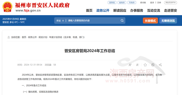 2024年以来,晋安区房管局紧紧围绕区委、区政府各项工作部署,以推进高质量发展为主题,以稳中求进为总基调,以突破发展为总目标,全力推进各项房管工作有序开展。现将2024年重点工作开展情况、存在问题总结如下: