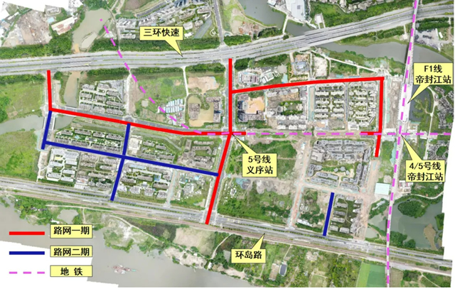 二期工程包含4条道路,其中有一条次干路、三条支路,全长约1.3km,总投资约1.2亿元。
