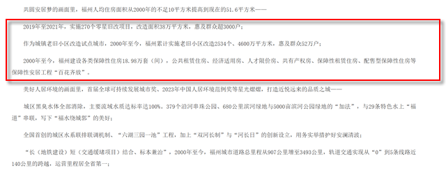 根据官方发布的数据,2000年至今,福州建设各类保障性住房18.98万套(间),公共租赁住房、经济适用房、人才限价房、共有产权房、保障性租赁住房、配售型保障性住房等保障性安居工程“百花齐放”。