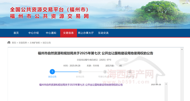 海西房产网(微信公众号:fjhxfcw)消息:9月28日,福州市自然资源和规划局发布“关于2025年第七次公开出让国有建设用地使用权的公告”。