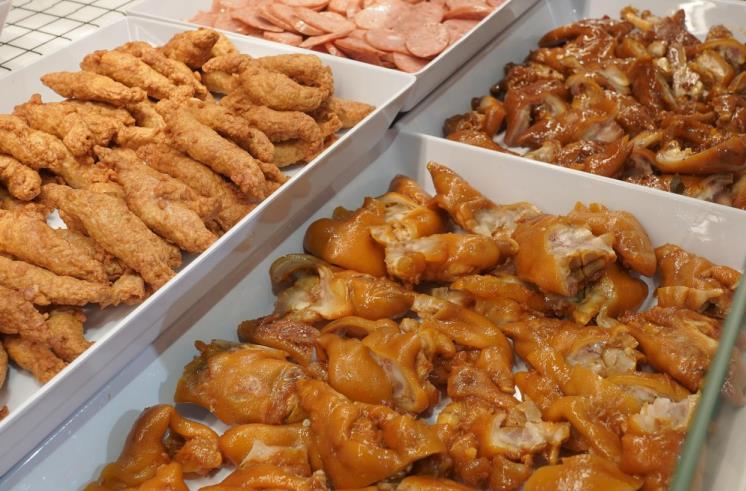 烘焙与熟食区域也迎来了显著扩容,经营模式改为自营,现场制作的SKU大幅增加。烘焙区全面升级,以现烤商品为主,植入网红产品如榴莲千层、金秋桂花丰收欧包、现烤月饼等。熟食区引入九多肉多、双汇东来同款熟食,新增牛肉卷、北京烤鸭、现炒板栗、烤鸡、三文鱼寿司、汉堡、披萨、凉皮等新品,并通过明厨亮灶方式让食品安全可视化管理。