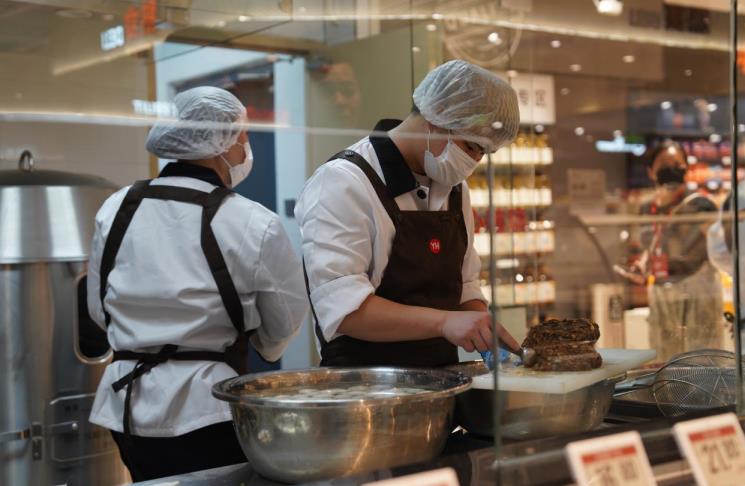 服务提升是此次调改的另一大亮点。门店不仅保留了砍肉、杀鱼、活鲜打氧、水果清洗去皮切片等常规服务,还推出了多项特色服务:如购买天农清远走地鸡可免费帮忙烤制,调理牛排、法式羊排免费现煎,水果果切根据甜度编号并推荐品尝顺序,并提供蔬菜、肉禽、水果的试吃服务。