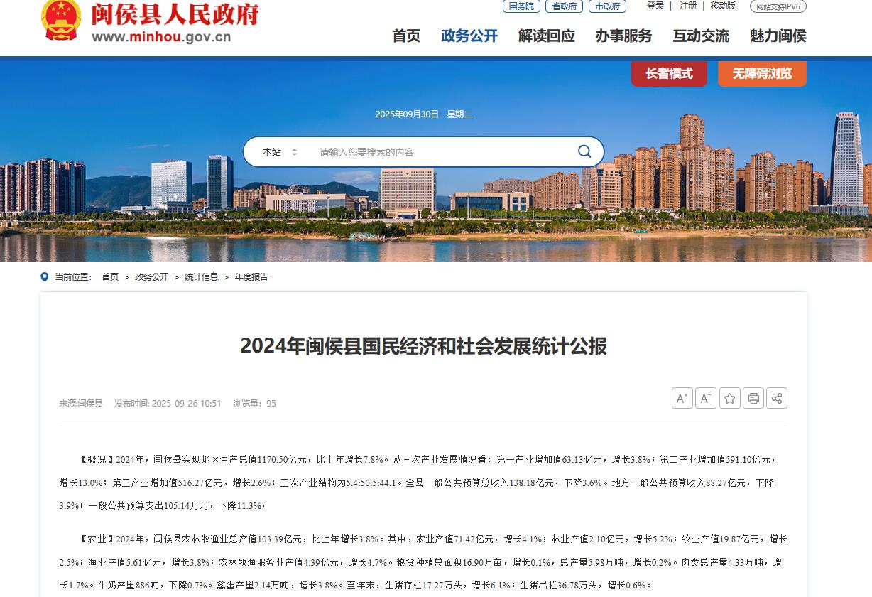 海西房产网(微信公众号:fjhxfcw)消息:2025年9月26日,闽侯县政府官网发布“2024年闽侯县国民经济和社会发展统计公报 ”。