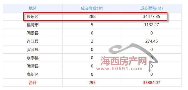 其中,“长乐区”集中签约288套,面积34477.35㎡。以面积位列,占据整体份额的96.07%。
