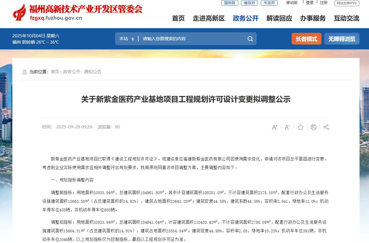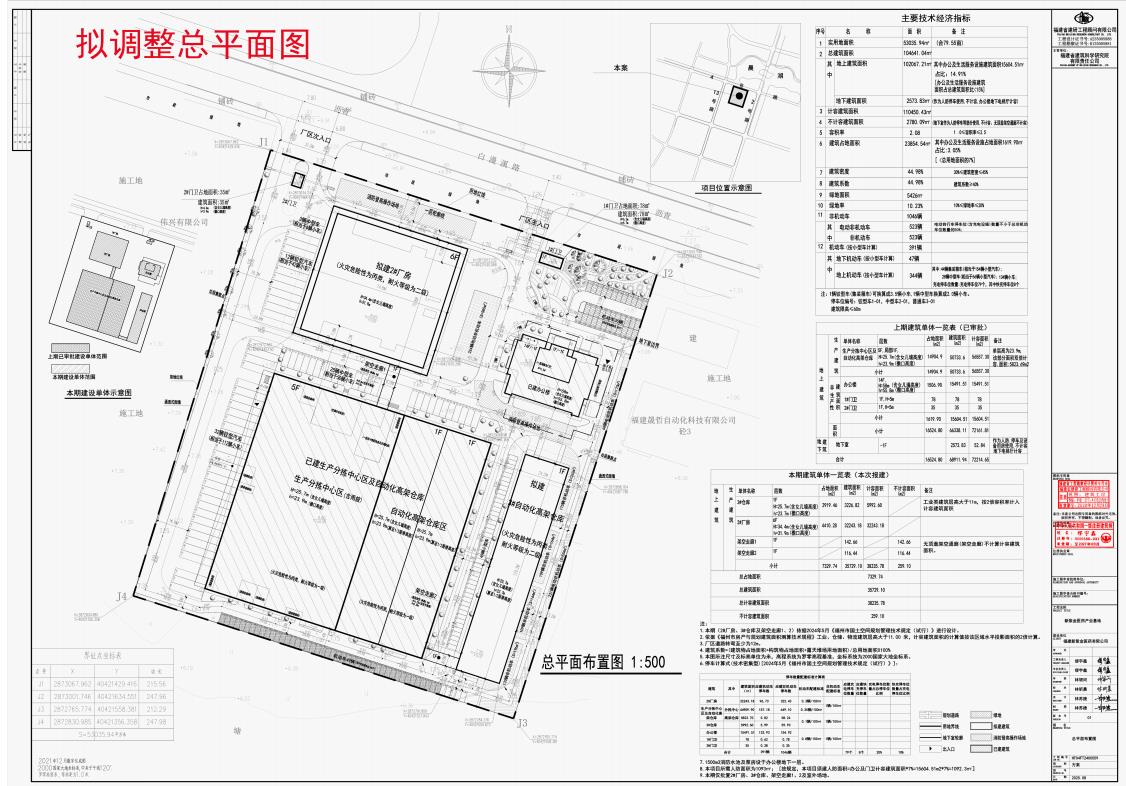 新紫金医药产业基地项目已取得《建设工程规划许可证》。现建设单位福建新紫金医药有限公司因使用需求变化,申请对该项目总平面图进行变更。考虑到企业实际使用需求且相关调整符合规划要求,我局原则同意该项目调整方案,主要调整内容如下: