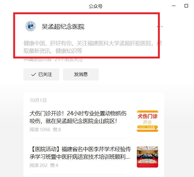 随着服务号和公众号已正式完成更名,其相关平台正式启用新名称“吴孟超纪念医院”。