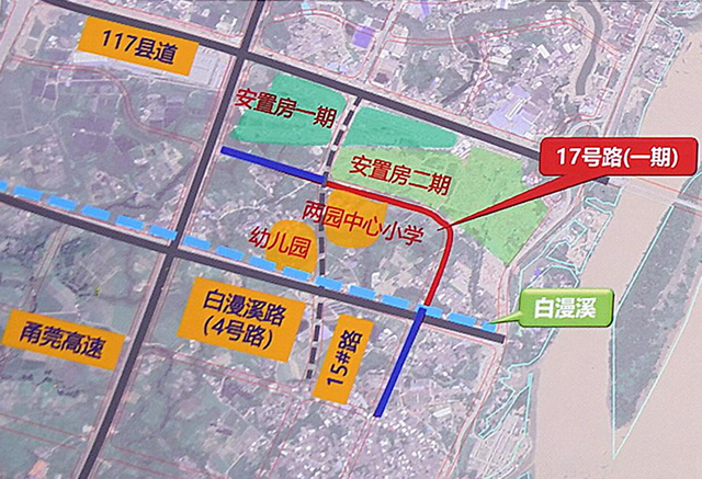 随着“两园”区入驻企业的快速增长,路网的交通承载能力急需提升。17 号路衔接园区各级道路,二期建成后可改善两园安置房及附近区块的通行条件,切实盘活片区路网。