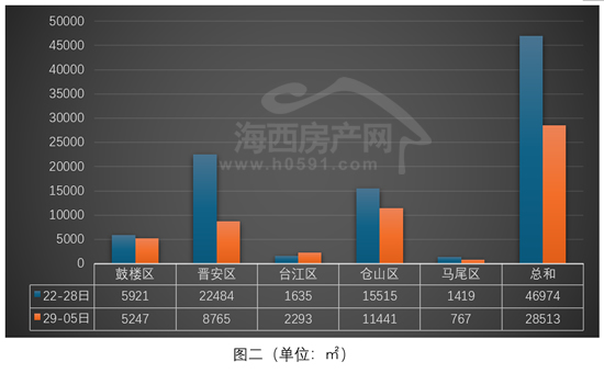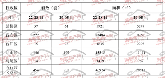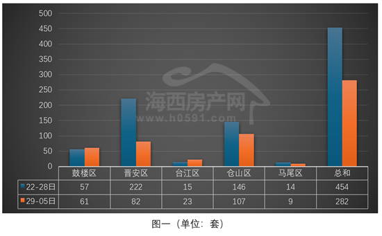 “台江区”和“马尾区”位列四、五两位,上周分别签约23套和9套,环比前一周分别增加8套和减少5套。