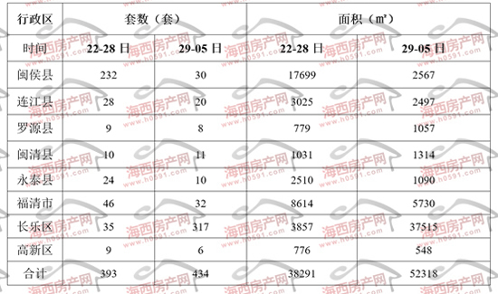 上周福州所辖八县(市)区住宅签约明细表