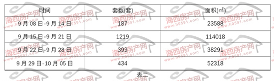 表二为2025年9月8日-10月5日福州所辖八县(市)住宅签约明细表。上周八县(市)住宅签约434套,环比前一周增加41套。