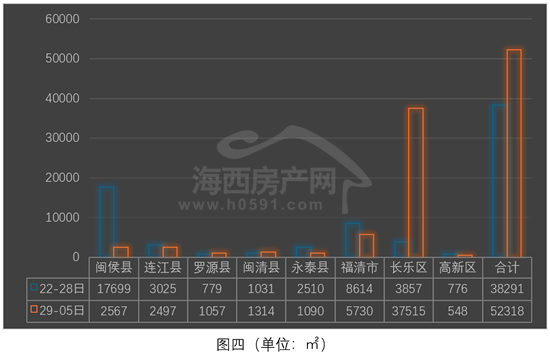 “闽侯”和“连江”位列三、四两位,分别签约2567㎡和2497㎡,环比前一周双双下跌。