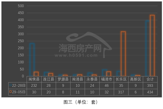 “福清”和“闽侯”位列二、三两位,上周分别签约32套和30套,环比前一周分别减少14套和202套。