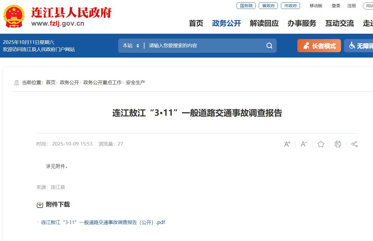海西房产网(微信公众号:fjhxfcw)消息:2025年10月9日,连江县官网发布“连江敖江“3·11”一般道路交通事故调查报告”。