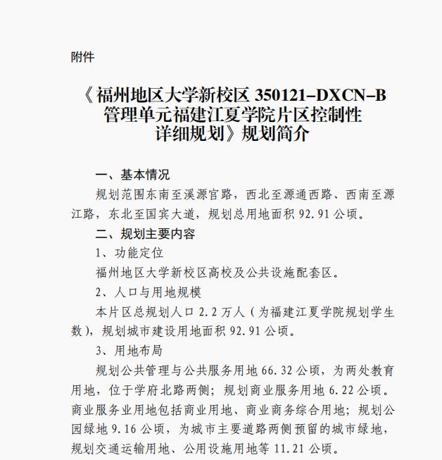 《福州地区大学新校区 350121-DXCN-B管理单元福建江夏学院片区控制性详细规划》规划简介