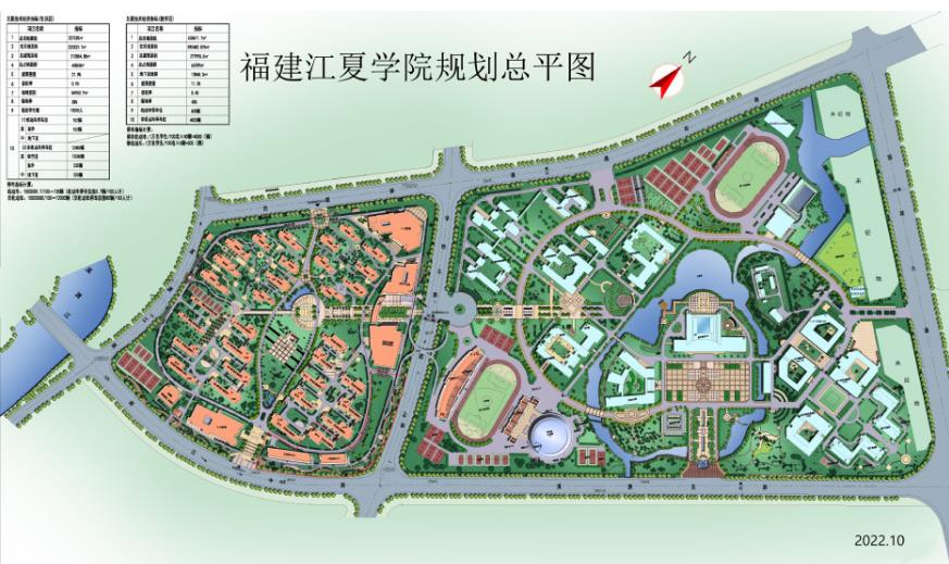 本片区总规划人口 2.2 万人(为福建江夏学院规划学生数),规划城市建设用地面积 92.91公顷。