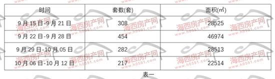 图一为2025年9月15日-10月12日福州五行政区住宅签约明细表。上周福州五区住宅签约217套,环比前一周减少65套。