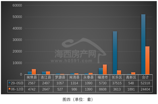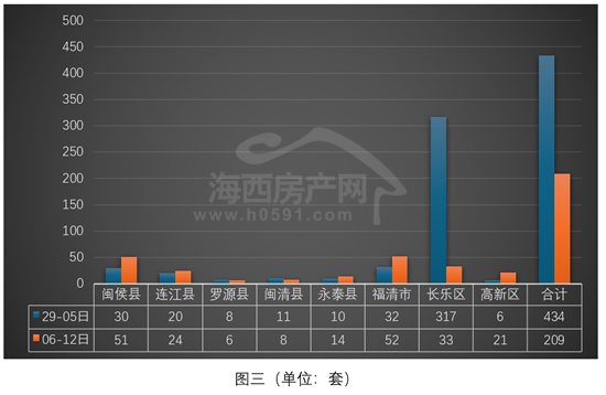 “长乐”、“连江”和“高新区”位列三到五位,上周分别签约33套和24套和21套,环比前一周分别两升一降。