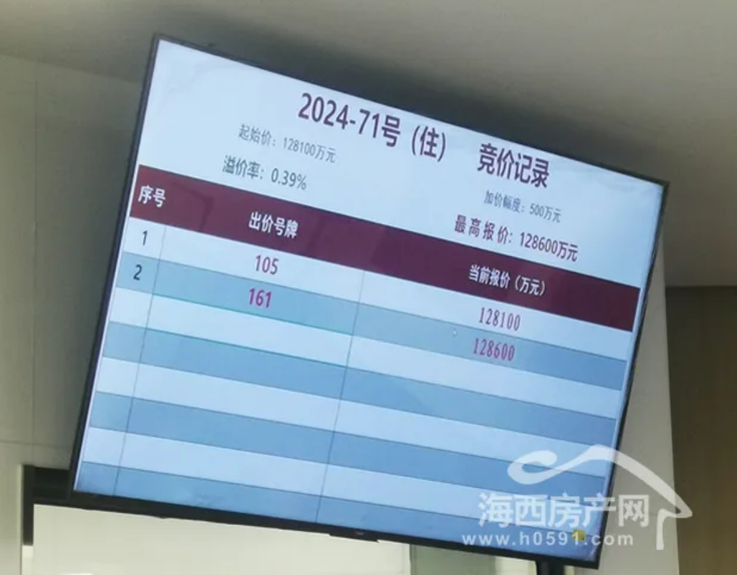 其中,福州新众旭置业有限公司以12.86亿竞得福州宗地2024-71号,楼面地价7832.66元/㎡。