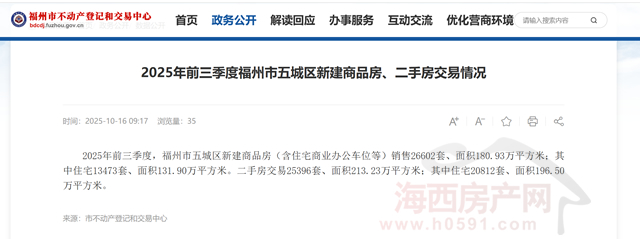 此外,2025年前三季度,福州市五城区二手房销售213.23万㎡,与2024年同期的203.35万㎡相比,增加48.58%。