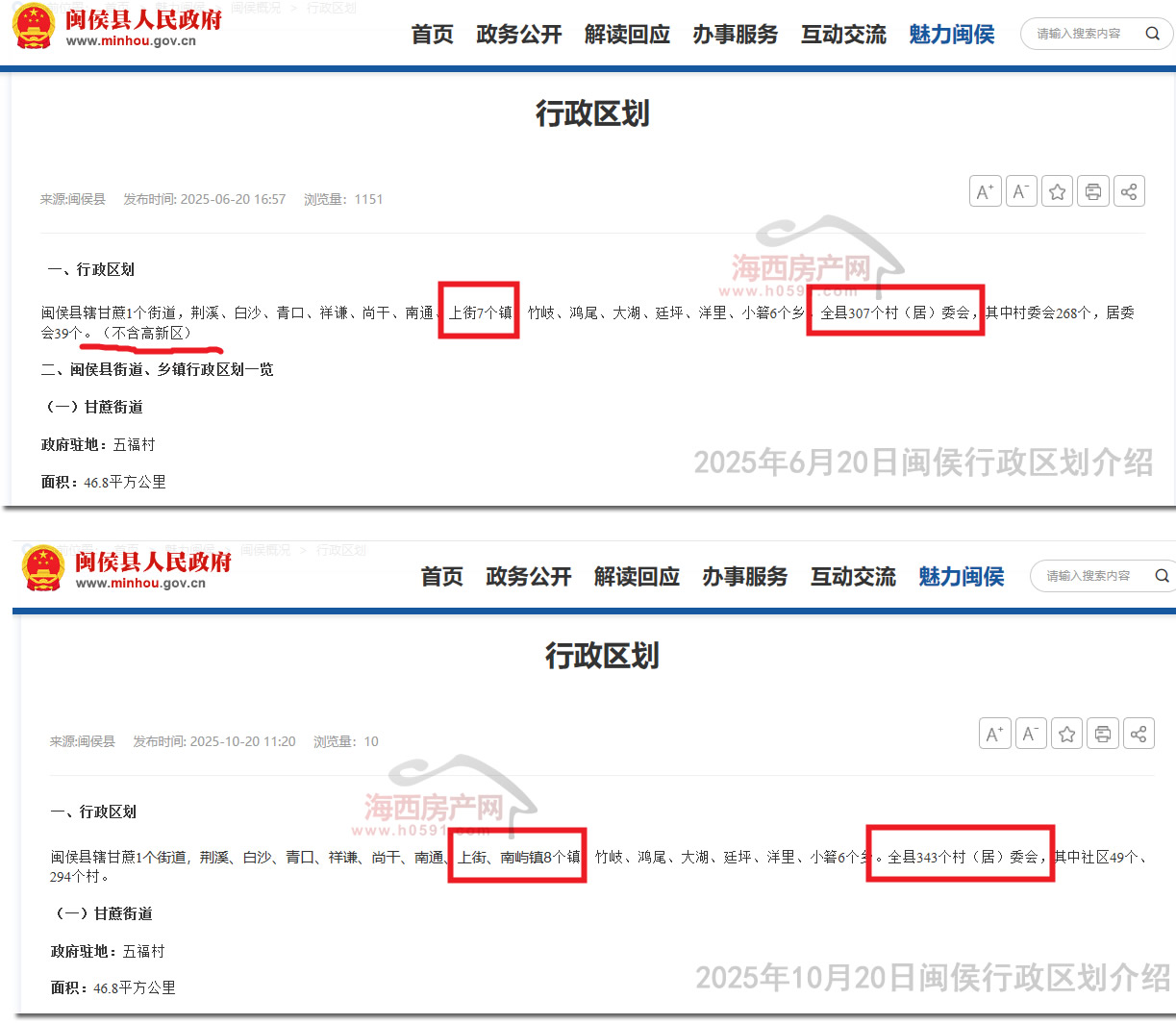 明确新加入了南屿镇,村(居)委会由307个,变为了343个。