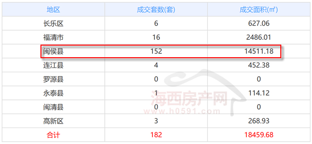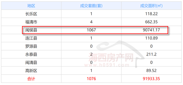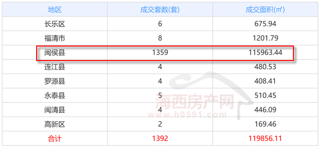 签约量突然暴涨主要来自于“闽侯”爆发,上周签约2613套、224498㎡,在八县(市)区当中所占的整体份额高达90.65%和89.02%。