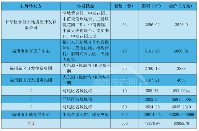 数据统计显示,9月22日以来,包括长乐区领航土地房屋开发有限公司、福州市国有房产中心、福州新区开发投资集团、福州市土地发展中心等平台陆续发布八则转让公告。