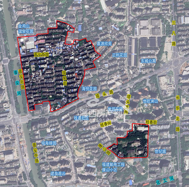 晋安区琯尾街周边地块及康山庙北侧地块位于晋安区岳峰镇,晋安河以东。