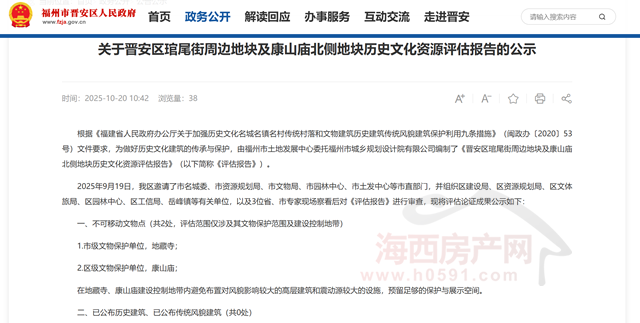 海西房产网(微信公众号:fjhxfcw)消息:10月20日,福州市晋安区人民政府办公室发布“关于晋安区琯尾街周边地块及康山庙北侧地块历史文化资源评估报告的公示”。