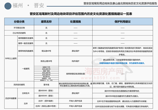 一般建筑9处:桃花山巷38号,需对有保留价值的构件应收尽收。琯尾街178号等8处,按照房屋征收一般流程进行处置。