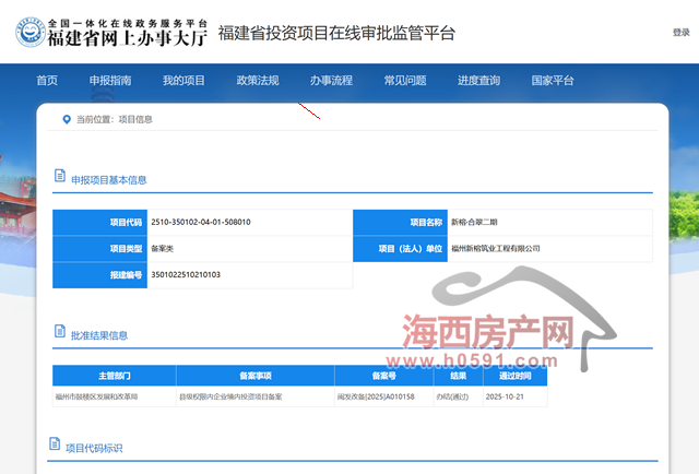 海西房产网(微信公众号:fjhxfcw)消息:福建省投资项目在线审批监管平台公布信息显示,“新榕·合翠二期”已与10月21日通过备案报建。