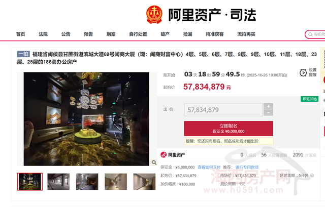 海西房产网(微信公众号:fjhxfcw)消息:闽侯县人民法院将于2025年10月26日上午10:00至2025年10月27日上午10:00止(延时的除外)在淘宝网司法拍卖网络平台上进行公开拍卖活动。
