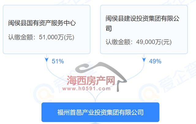 股权穿透图显示,闽侯县国有资产服务中心、闽侯县建设投资集团有限公司分别持有福州首邑产业投资集团51%和49%股权。