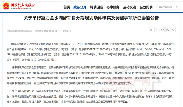 海西房产网(微信公众号:fjhxfcw)消息:10月22日,闽侯县自然资源和规划局发布“关于举行富力金水湖郡项目分期规划条件核实及调整事项听证会的公告”。