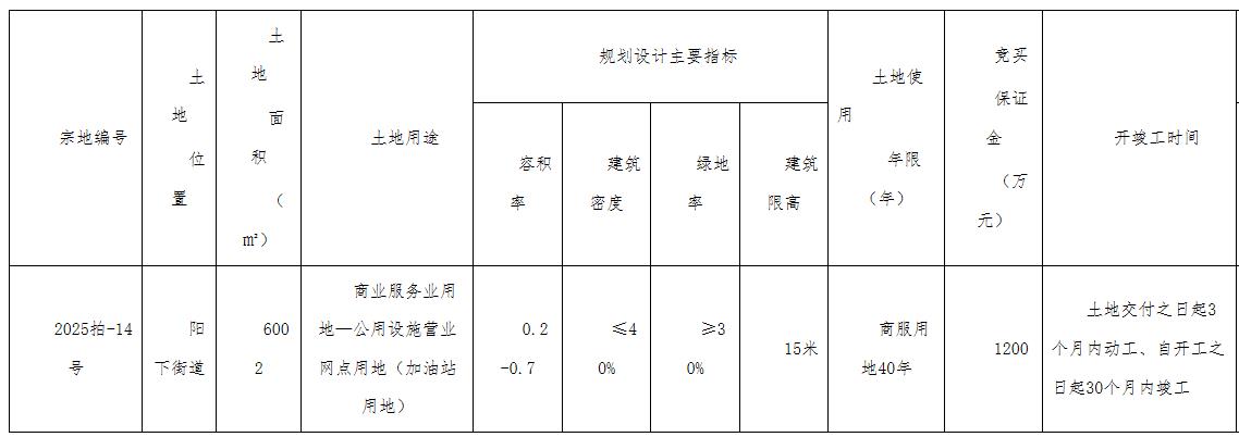 宗地编号2025拍-14号,位于福清市阳下街道,面积6002平米(折合9.003亩),土地用途:商业服务业用地—公用设施营业网点用地(加油站用地)