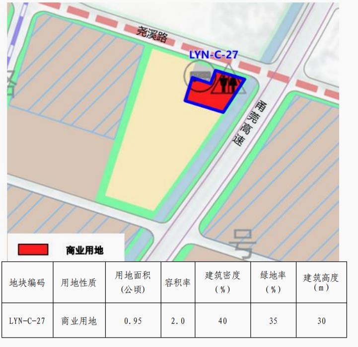 C-27地块,用地性质商业用地,占地面积0.95公顷,容积率2.0,建筑密度40%,绿地率35%,建筑限高30米。