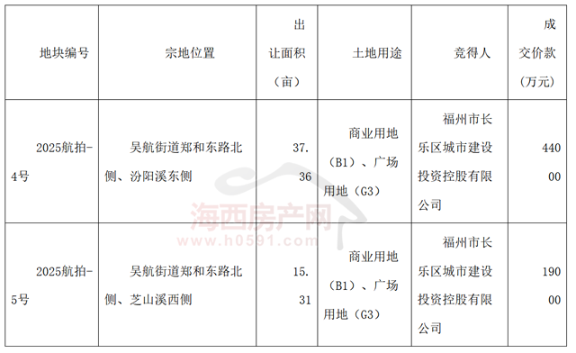 最终,福州市长乐区城市建设投资控股有限公司连下两城,分别以底价4.4亿、1.9亿成功竞得2025航拍-4号、2025航拍-5号地块。