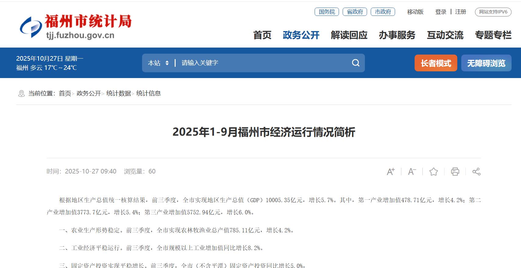 海西房产网(微信公众号:fjhxfcw)消息:2025年10月27日,福州市统计局发布 “2025年1-9月福州市经济运行情况简析”。