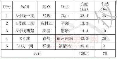 福州地铁第三期建设规划共5个项目,包含3号线一期、4号线二期、6号线西延、8号线和S1线一期工程,以及配套的车辆段、停车场、车站、主变电所等相关工程,线路总规模约138.1km。