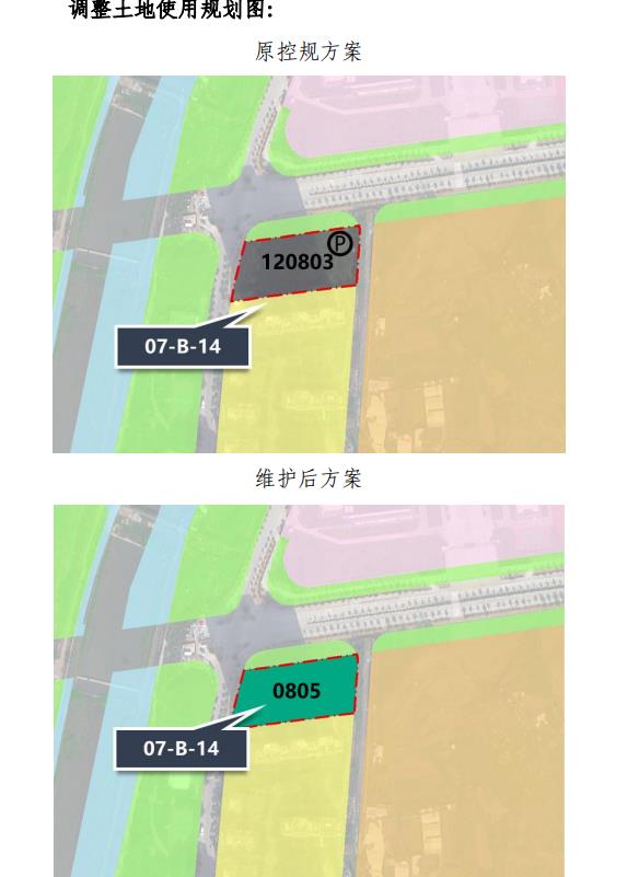 动态维护后的07-B-14,用地性质变化和开发强度指标变更;调整为体育用地(0805),参考其他已建体育用地,开发强度指标在合理范围内。所以本次动态维护开发强度具有指标合理性。