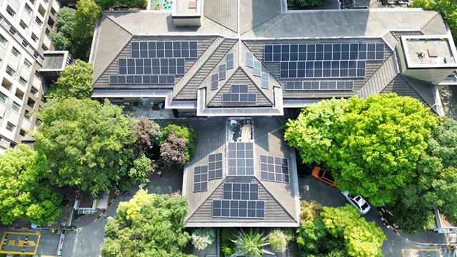 图为:上海金色榴乡园工作用房屋顶安装光伏板