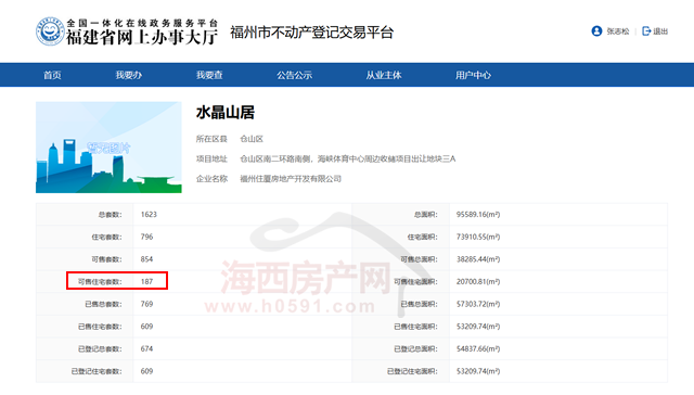 福州宗地2017-46号对应的项目为“水晶榕著”,备案名“水晶山居”。福州市不动产登记交易平台显示,“水晶榕著”2019年8月30日一次性取证之后,至今仍然有187套住宅可售。