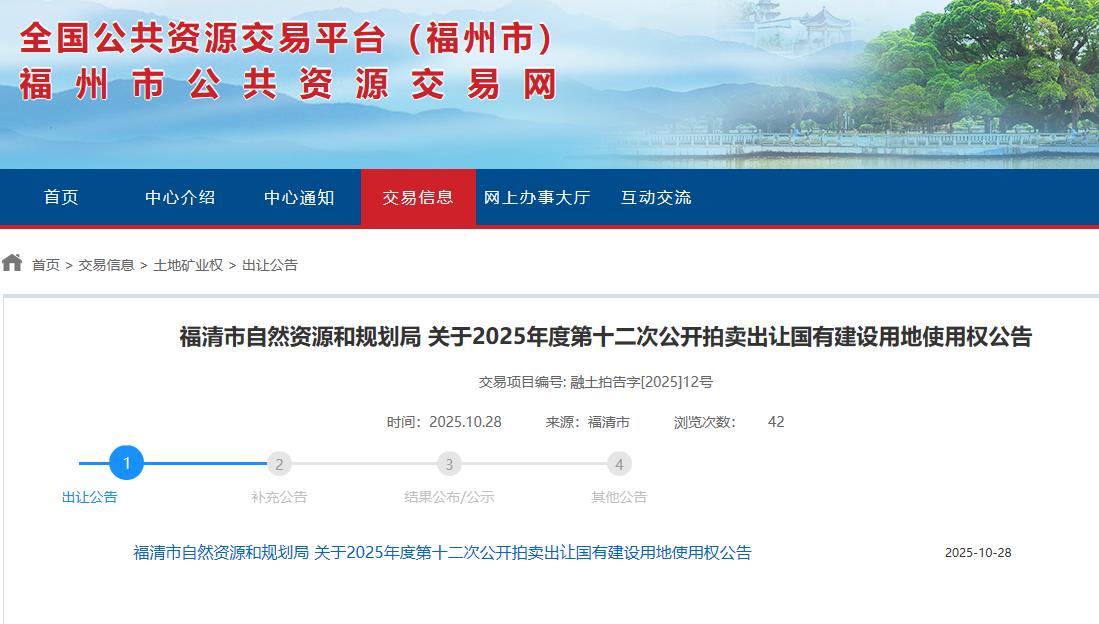 海西房产网(微信公众号:fjhxfcw)消息:2025年10月28日,福清市自然资源和规划局发布“关于2025年度第十二次公开拍卖出让国有建设用地使用权公告”。