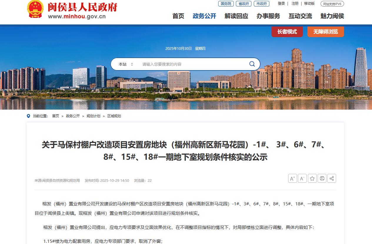 我局拟按现状予以规划核实。依据《福建省实施<中华人民共和国城乡规划法>办法》第五十三条,现将调整前后图纸进行公示,征求利害关系人意见。公示地点为“马保村棚户区改造项目安置房地块(福州高新区新马花园)”项目现场、闽侯县政务信息网、福州日报,公示时间为2025年10月29日至2025年11月11日。