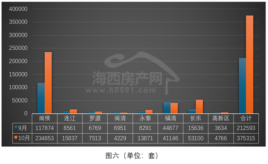 其中,10月福州七县(市)区住宅签约3812套、375315㎡,环比9月分别增加80.66%和76.54%。