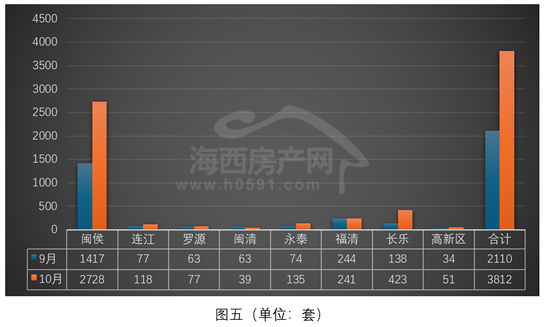 “长乐”、“福清”位列二、三两位,10月分别签约423套和241套,环比9月份分别增加285套和减少3套。