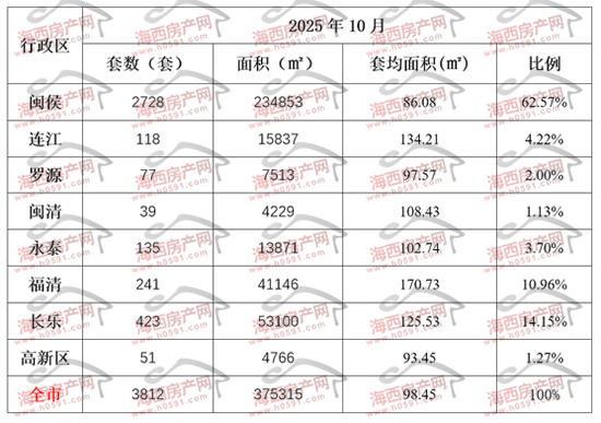 此外,今年10月福州八县(市)区住宅签约3812套、375315㎡,与2024年同期相比,分别大幅增加143.42%和107.64%。