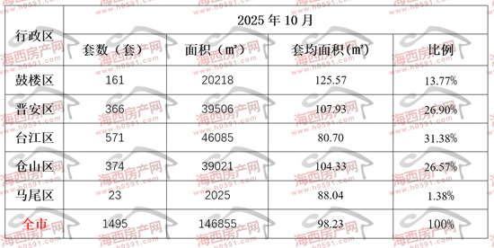 今年10月福州五区住宅签约1495套、146855㎡,与2024年同期相比,分别减少23.01%和28.43%。