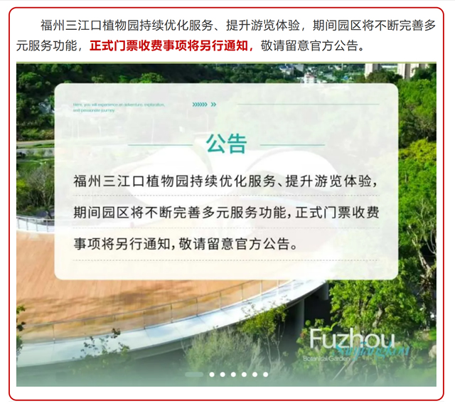 2025年6月30日,福州三江口植物园再次发布公告,该植物园试运行延长至2025年10月31日。