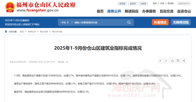 截至9月,仓山区建筑业企业签订的建筑合同额为4949282万元,比增32.1%。