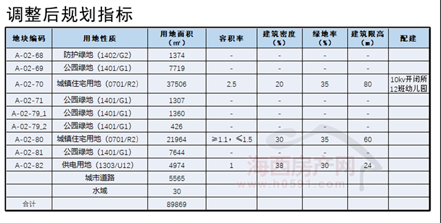 3、指标调整:    A-02-70地块容积率由≤2.8调整为≤2.5,建筑密度由≤22%调整为≤20%,建筑高度由60米调整为80米,绿地率保持≥35%不变。A-02-80地块容积率由≤3.0调整为1.1-1.5,建筑密度由≤28%调整至≤30%,绿地率由≥30%调整至≥35%,建筑限高由80米调整为60米。A-02-82地块容积率≤1.0,建筑密度≤38%,绿地率≥30%,建筑限高24米。